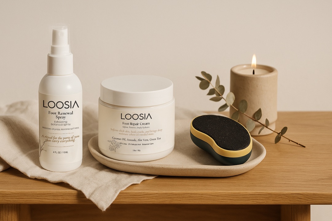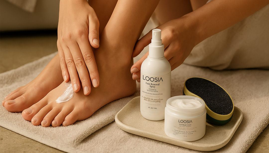 No more greasy foot creams or harsh, medicated scents. Our Loosia's Foot Repair Cream™ melts in, hydrates deeply, and leaves behind nothing but softness.